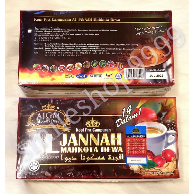 Kopi Al Jannah Mahkota Dewa isi 20 saset 30gr Made in Malaysia Jual Kopi Al Jannah. Get the best price for Al Jannah Kopi among 451 products Shop compare and save more with BigGo. Rated 500 out of 5 based on 20 customer ratings.