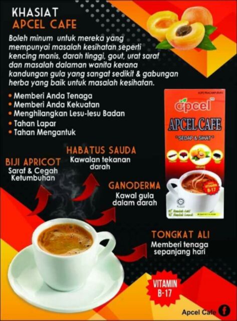 Kopi APCEL Sedap Sihat Kelebihan dari biji aprikot Jom sertai agent KEAHLIAN seumur hidup DAPAT beli dengan Murah.
