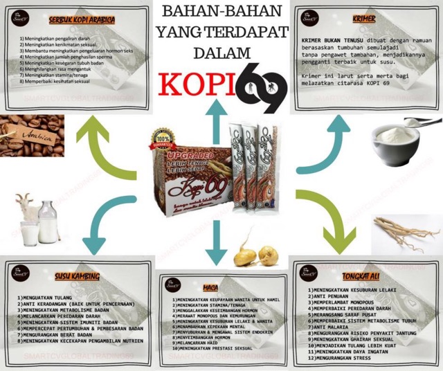 Product Description KEISTIMEWAAN KOPI 69 KOPI 69 merupakan satu-satunya minuman kopi kuat yang terbukti TIADA BAHAN TERLARANGBERACUN seperti dadah perangsang SILDENAFILTADALAFIL DAN VARDELAFIL. BEBAS RACUN 100 HERBA. Halaman 1 dari 8 Foto.