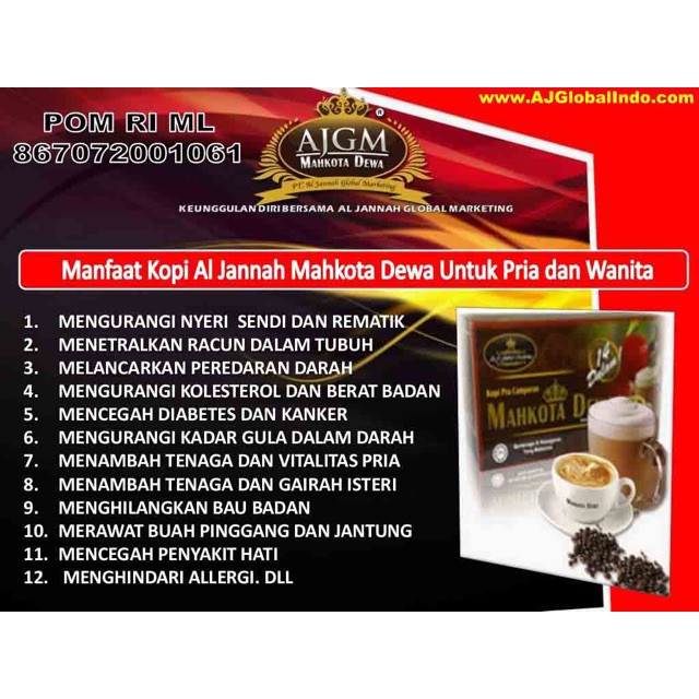 About Press Copyright Contact us Creators Advertise Developers Terms Privacy Policy Safety How YouTube works Test new features Press Copyright Contact us Creators. Kopi Al Jannah Mahkota Dewa yang berasal dari negeri jiran Malaysia dengan kualitas terbukti dibuat istimewa untuk pencinta kopi yang ingin memiliki kehidupan yang lebih baik. Kopi al jannah kopi sehat racikan herbal dapat mengobati berbagai macam penyakit.