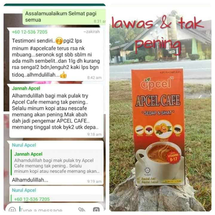 Apcel cafe merupakan kopi pracampuran istimewa yang mempunyai khasiat yang tinggi dengan gabungan 4 herba terhebat yang terdiri daripada extract biji Aprikot Ganoderma tongkat ali dan Habatussauda untuk membantu merawat masalah kesihatan. KOPI SIHAT SETANDING KOPI MAHAL DIRUMUS KHAS UNTUK MEMBANTU MENYELESAIKAN MASALAH KESIHATAN ANDA Mengandungi bahan-bahan semulajadi dan. Apcel taiping kamunting.